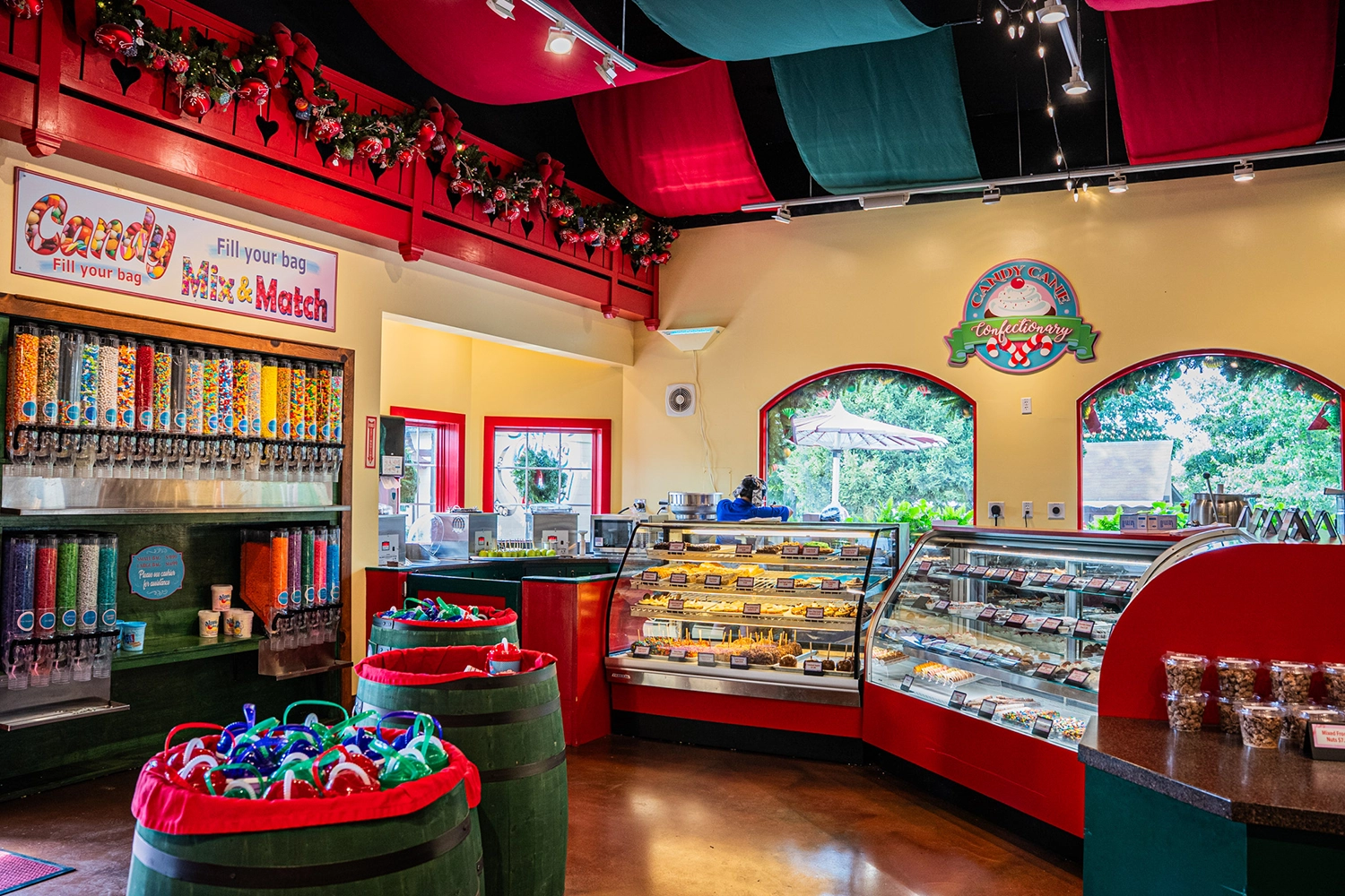 Fudge, Cookies, Dipped Apples. Located inside Santa’s Merry Marketplace.