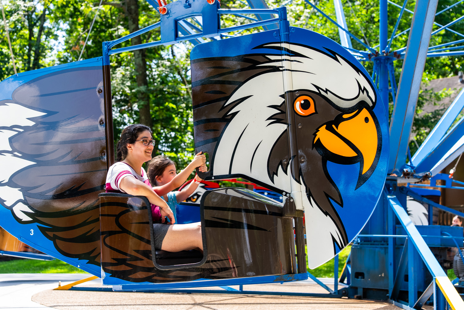 Riding with a friend or family member? Take turns guiding the eagle throughout the ride or ride twice.